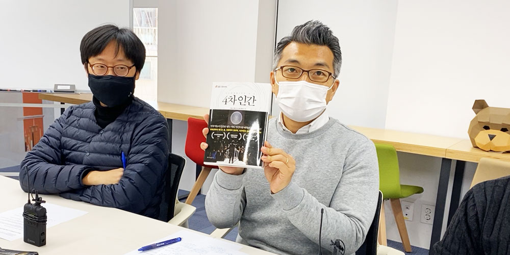 네, 그럼요! 2018년 여름, 정확히기억납니다.버스타고 출판사 워크숍을 가는 중이었습니다. 버스 안에서 박종훈 차장님과 처음 <4차 인간>을 소개받고 이 책을 편집하느냐 마느냐에 대해서 논의를 했던 기억이 나네요. 2018년 6월에 계약을 했고, 그 후 2년만에 책이 나왔던거죠. 총 시간이 오래 걸린 게 원고 집필시간때문이었는데 그 이유는 현직 방송작가님과 현직 PD님이 워낙 공사다망하셔서 원고가 조금 많이 늦어졌었어요(웃음). 많이 늦었지만 고생하셨습니다! 한 문장으로 줄이면 인간만이 할 수 있는 일에 대해서 얘기 하는 책입니다!