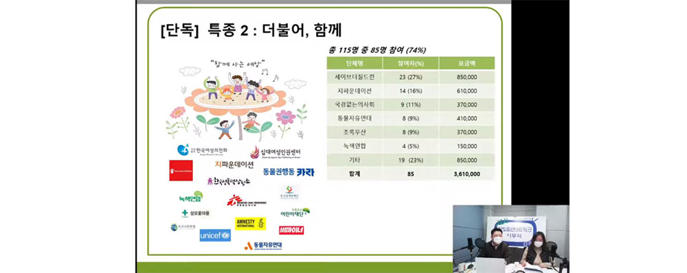 74%의 임직원분들의 힘으로 유니세프를 비롯한