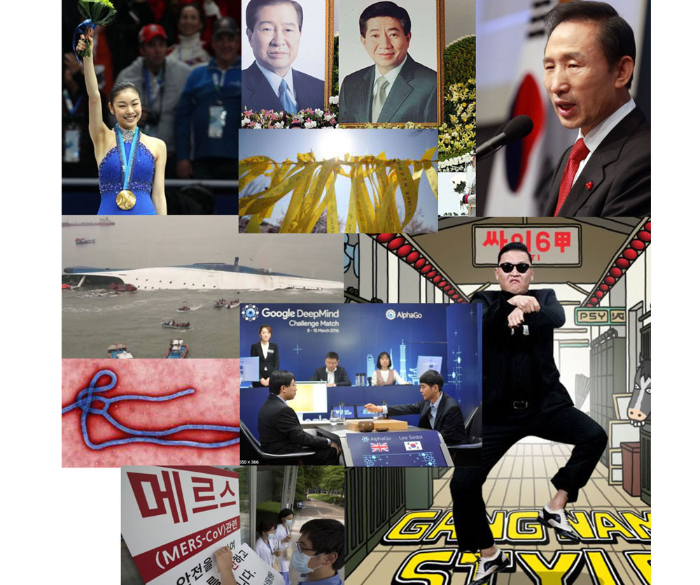 2014년 세월호 사건, 애볼라 바이러스, 2015년 메르스, 2016년 알파고와 이세돌의 대결이 있었어요
