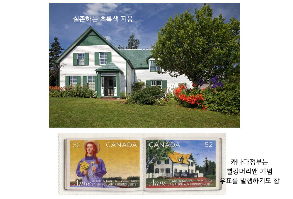 소설 속 프린스 에드워드 아일랜드 섬은 자신이 어린 시절을 보낸 곳으로 초록색 지붕은