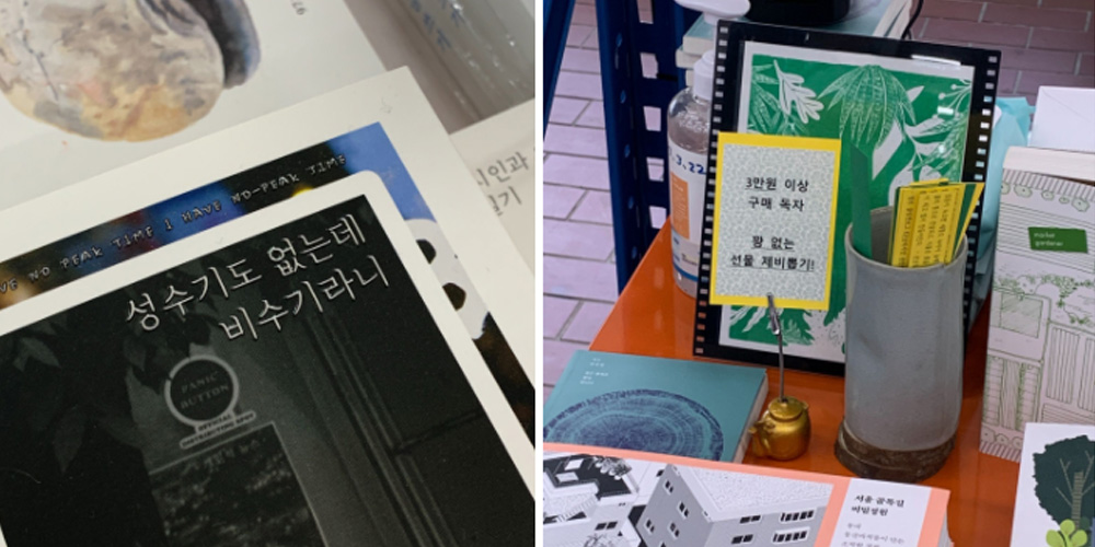 움직씨 옆에 있던 출판사는 이름이 뭐였지...기억이 잘 나지 않는다. 다만 단행본이 단 두 권밖에 나오지 않아서 저렇게 두 권으로 진열대를 꾸민 게 인상적이었다. 우리가! 책이 읎지! 재고가 없냐(?)