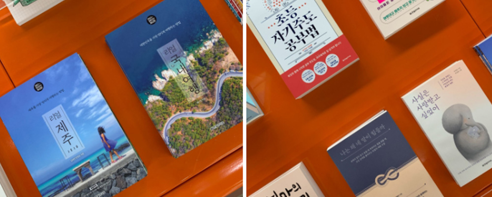 진열한 책 표지 디자인이 모두 동일하되 색만 변화를 준 출판사… 극강의 가성비라고 해야 하려나? 하지만 색감이 안정적이어서 보고 있으면 묘하게 기부니가 좋았다(...) ‘난생처음 시리즈’는 출간할 때부터 관심 있게 지켜보고 한 권도 구매하지는 않았다(응?). 일관성을 지키기 위해 이번에도 구매하지 않았다(응???).