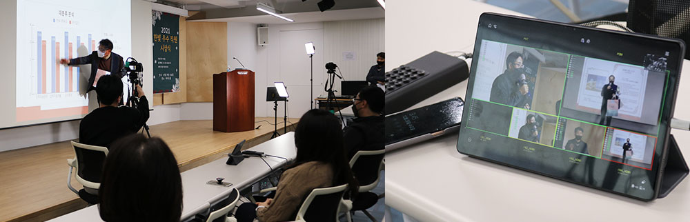 대회의실은 주로 전략회의나 사업계획 등, 여러 사람, 다른 팀이 모여서 회의를 하고, 전략을 세워가는 공간으로 많이 사용되는 것 같습니다. 물처럼 낮은 마음으로, 다투지 않고 서로 잘 의논하여 좋은 결론(성과)을 얻을 수 있으면 좋지 않을까 하여 이름지어 보았습니다. 약수재로 정해지기 전 후보 이름은