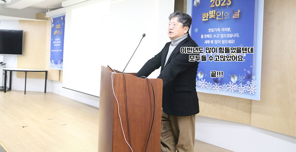 내년엔 우리 한빛이 더 도약할 수 있는 한 해가 되었으면 좋겠다는 말씀을 임팩트 있게 남겨주셨답니다.