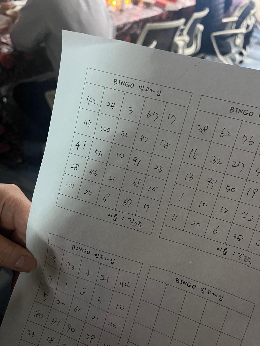 빙고는 총 3번에 걸쳐서 진행되었는데,