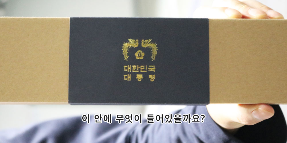 태어나서 처음 보는 대한민국 대통령이 적힌 선물