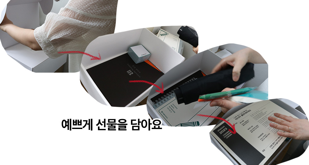 한빛에서 일할때 필요한 모든 용품들을 꽉꽉 채워서 이쁘게 포장합니다.