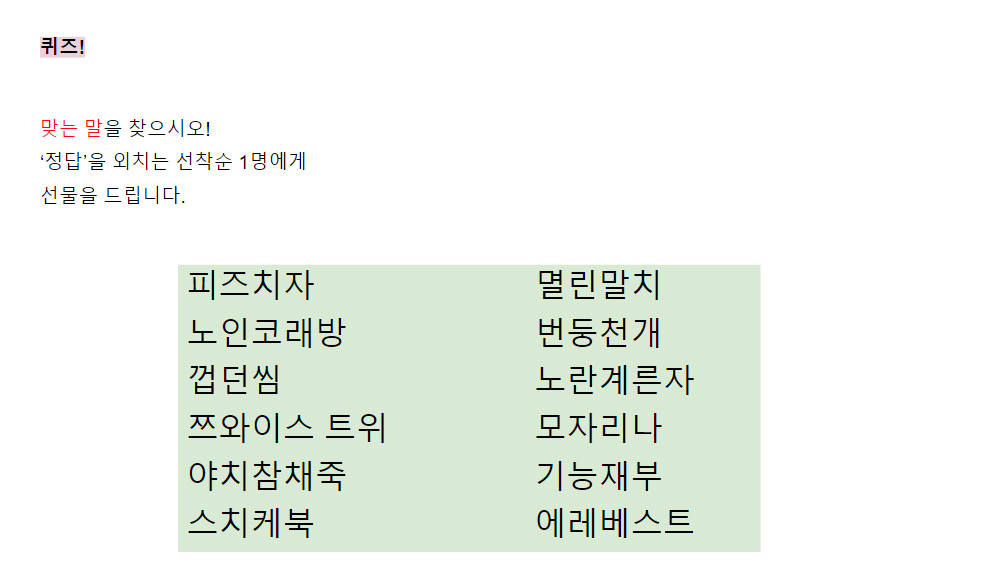 전......하나도 맞추지 못했어요...ㅠㅠ